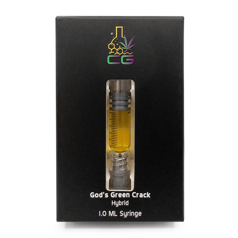 CG Premium Extracts – God’s Green Crack THC Hybrid Distillate Syringes – 1ML