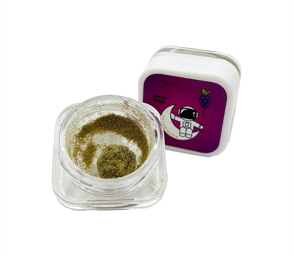 With To the Moon’s Moon Rock 1g in Grape flavor, an exquisite blend of AAAA grade cannabis flowers carefully dipped in 99.99% delta-9-tetrahydrocannabinol distillate, you may go on an extraterrestrial adventure. These Moon Rocks, which are expertly rolled and covered in high-quality kief, offer an unmatched experience that goes beyond the typical.